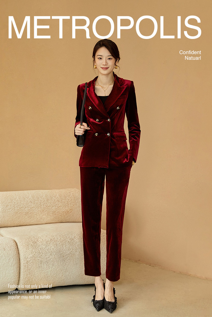 复古风穿搭的精髓一套丝绒西装就能轻松展现