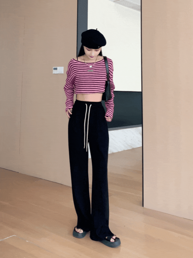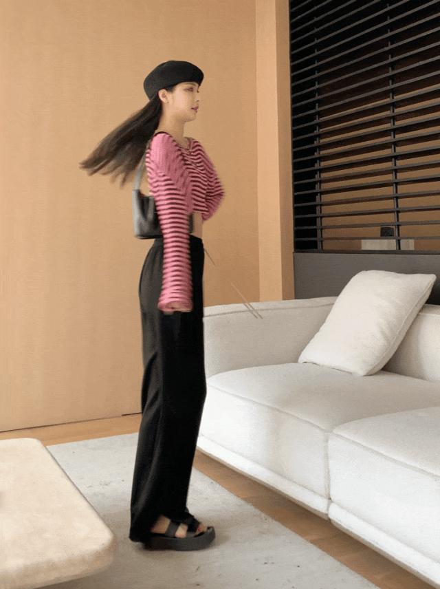 对于小个子女生而言,“紧身上衣+阔腿裤”这种搭配方式也十分友好,既不压个、不显臃肿!