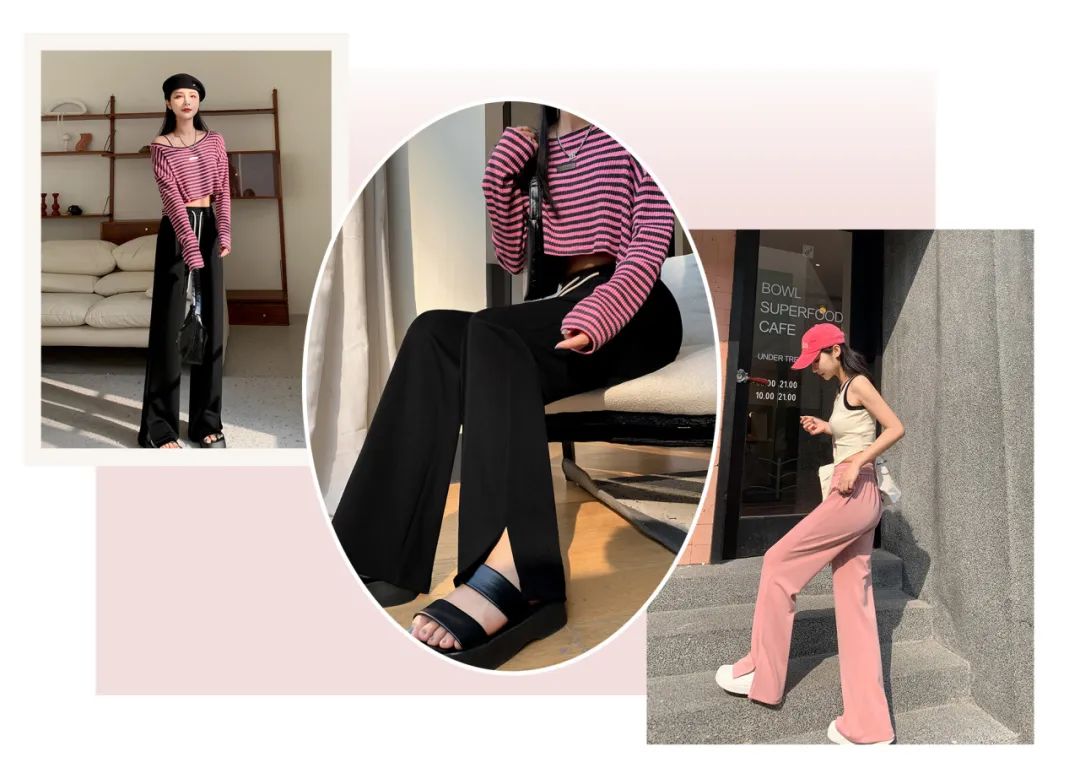 侧面裤脚开叉还有一种不沉闷单调的感觉,多了点时尚。