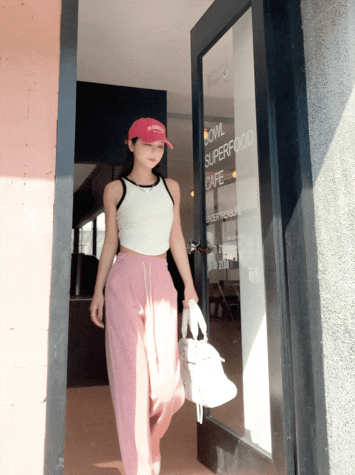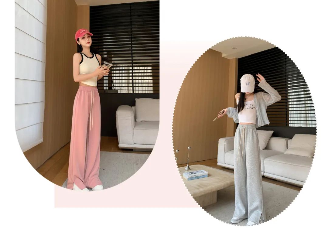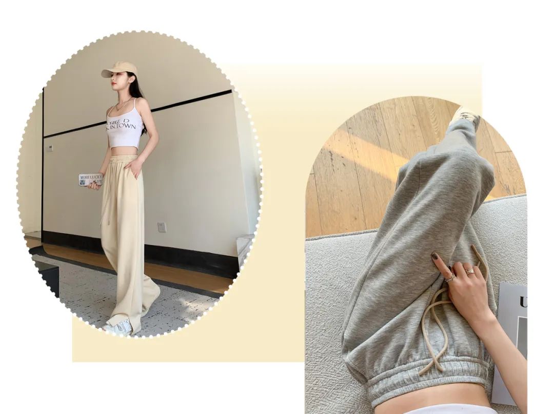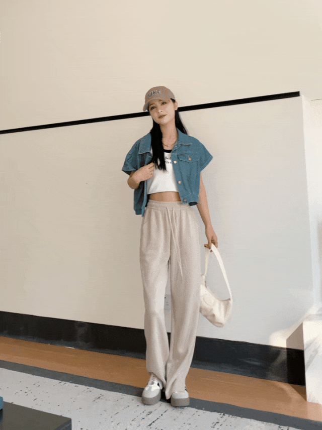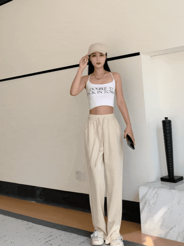 阔腿裤主打休闲运动风,从风格魅力上看,跟简单的T恤、背心、吊带最“合拍”!