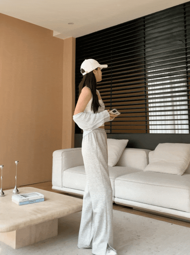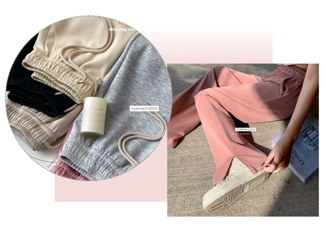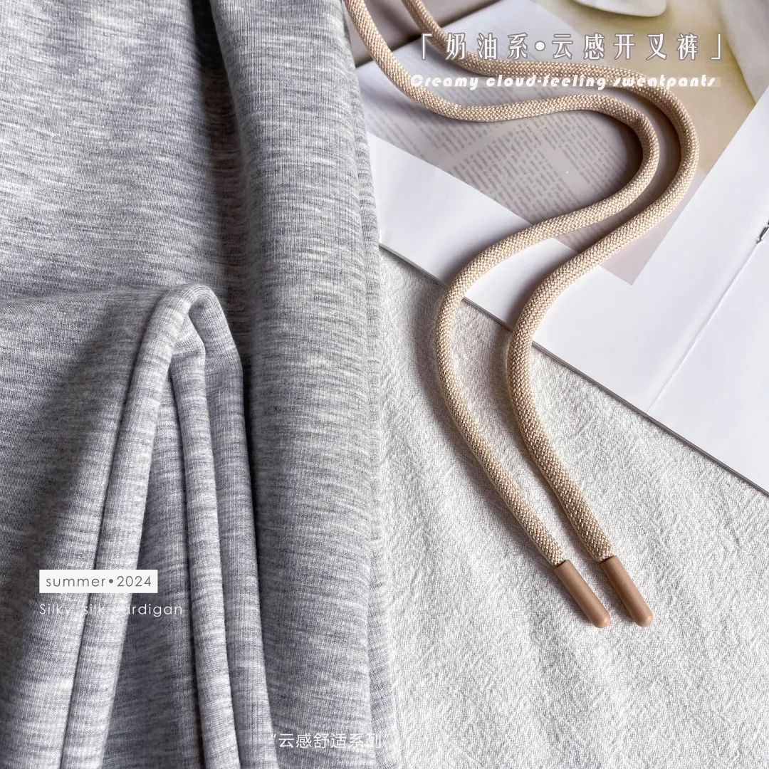 它的触感非常软,穿着舒适,很多床上用品都在用它制作,可想而知这条裤子有多舒服啦~上身的垂感刚刚好!
