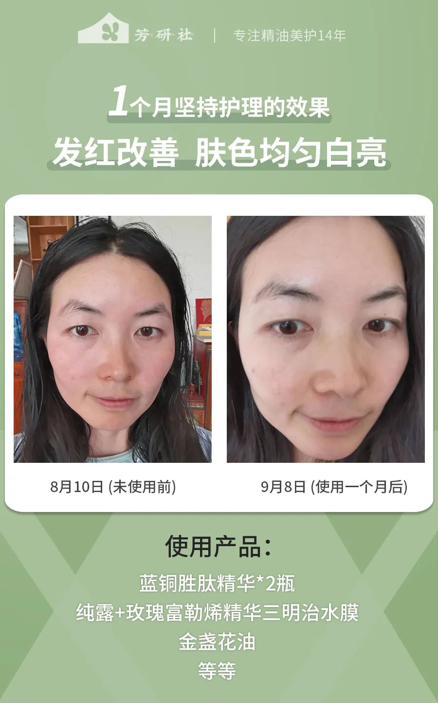 你们有什么需求、想要改善哪些,就私信芳研社小伙伴,给你提供专属于你、适合你的护肤方案~