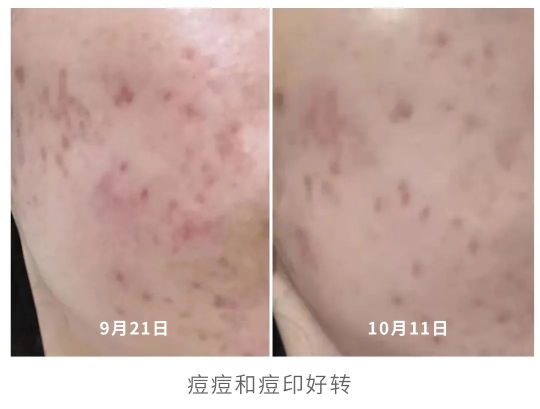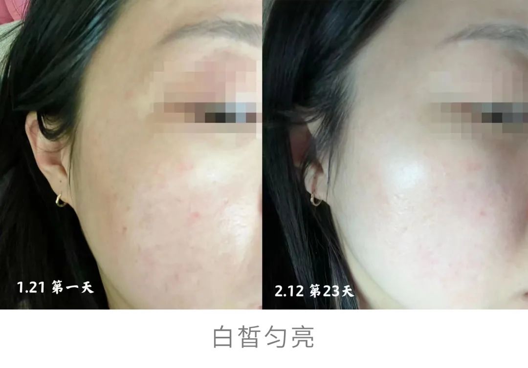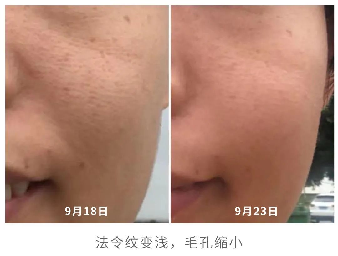 我是2月24号第一次开瓶用上,用了2套,刚好一个皮肤周期28天,3月25号用完,使用前后也拍了对比图~