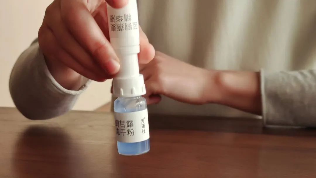 A:分别打开冻干粉和精华液的盖子,将两个瓶口对准后拧紧,把精华液挤入冻干粉瓶子中,摇晃均匀, 融合好后,再吸回精华液瓶子中,拧上盖子储存。