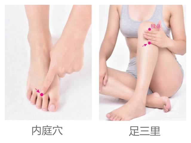 除了吃以外,艾灸或者按揉穴位也是不错的方法,可以艾灸足阳明胃经的内庭穴和足三里穴。