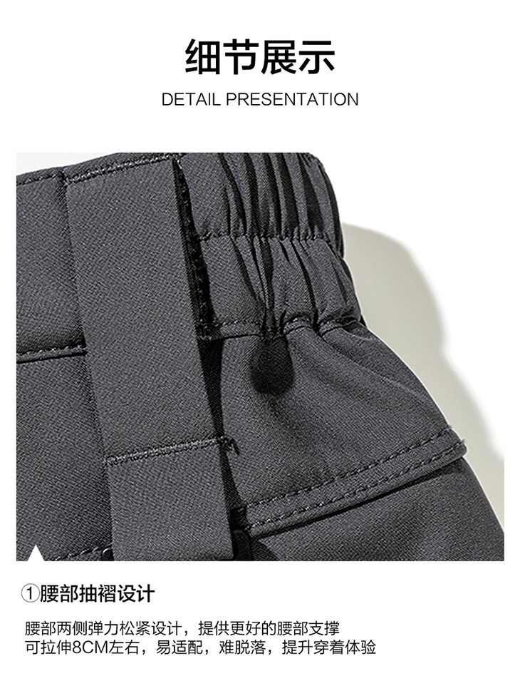 腰部抽褶设计,腰部两侧弹力设计,可拉伸8cm左右,分区装载设计,不易掉落 。