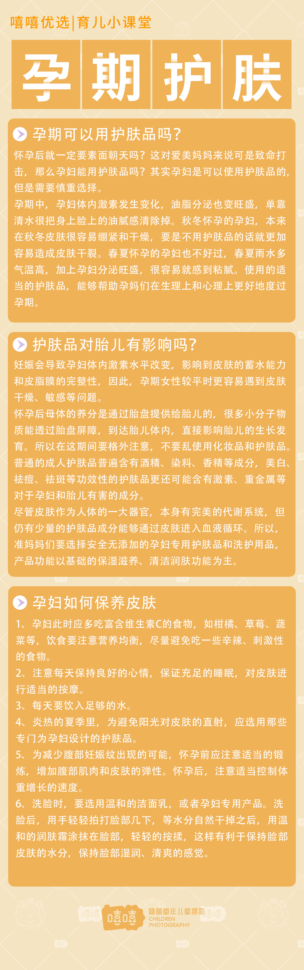 孕期护肤品的选择应以基础护肤为主,以安全养护、温和滋润为前提。而对于敏感性肌肤的孕妇,应该选择专为孕妇设计的温和无刺激的孕妇护肤品。经权威机构安全检测和敏感性测试,不添加酒精、矿物油、重金属、激素、染料等有害成分的护肤品才是孕期护肤的安全保障。