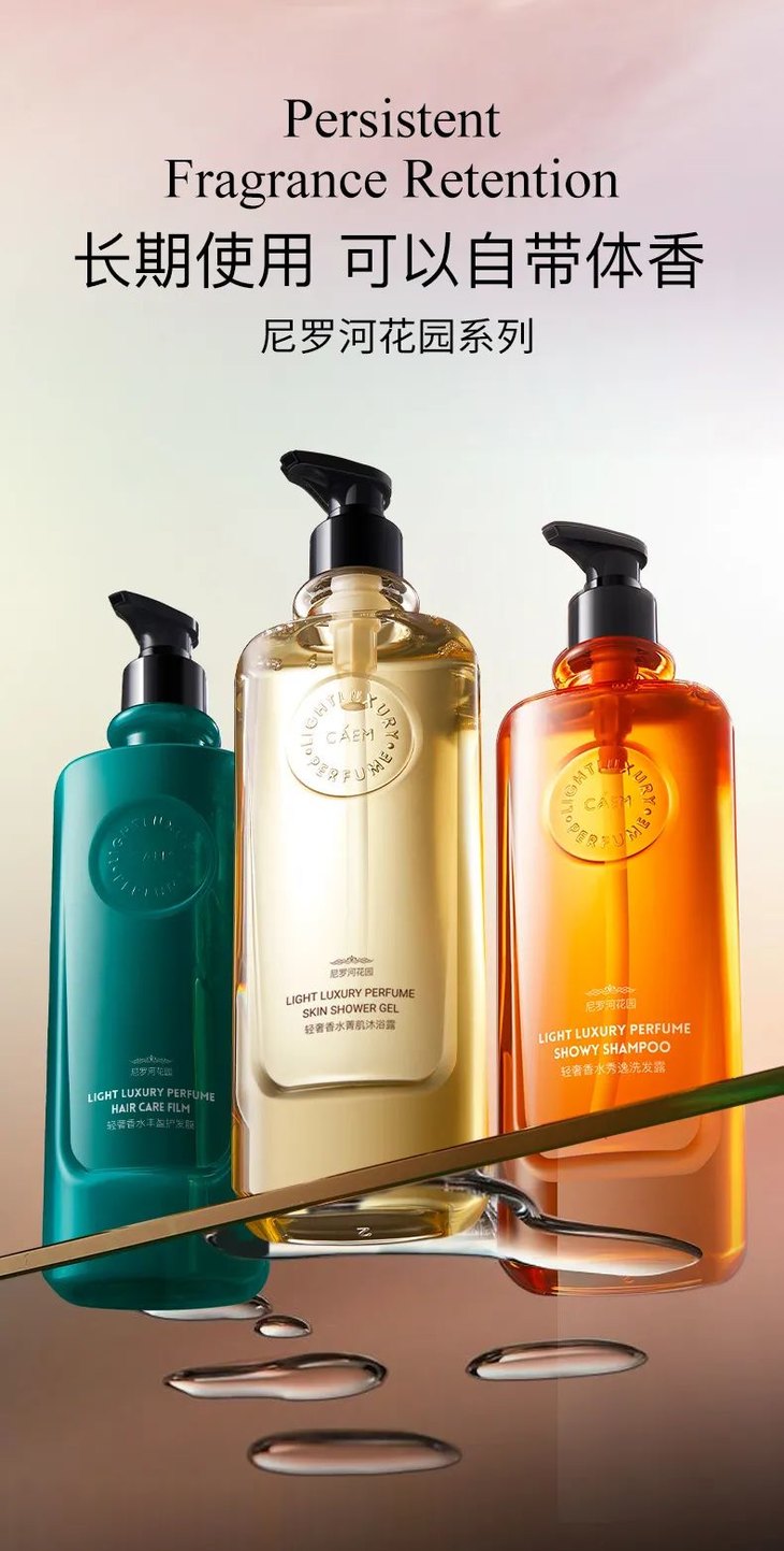 洗发水适合任何发质使用,搭配护发素效果更佳,搭配同款打造的沐浴露,温和肌肤清爽不刺激,柔嫩清爽滋润肌肤,头发飘逸柔顺蓬松轻盈,种草最圈粉的洗护套装——你值得拥有!