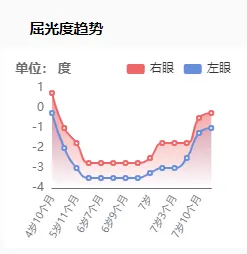 以下为小然屈光度趋势图,可以看到,以执行4L疗法为分界点,之前度数一直在涨,之后度数一直在降(近视度数为负数,往下即为近视度数加深,往上位近视度数减少)。
