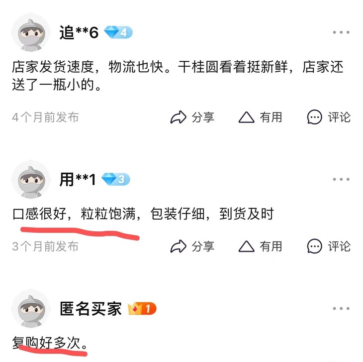 桂圆肉色泽饱满,肉质醇厚,口感清甜不腻口,无核无沙口感可好了!可以直接吃,也可以入药煲汤煮茶!