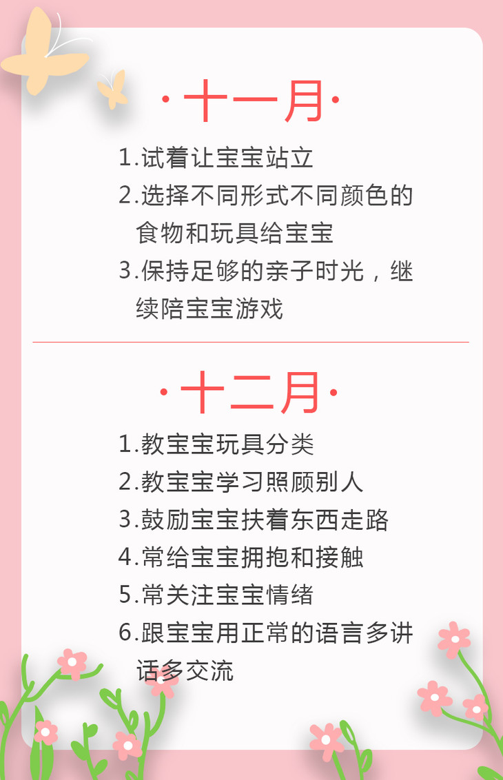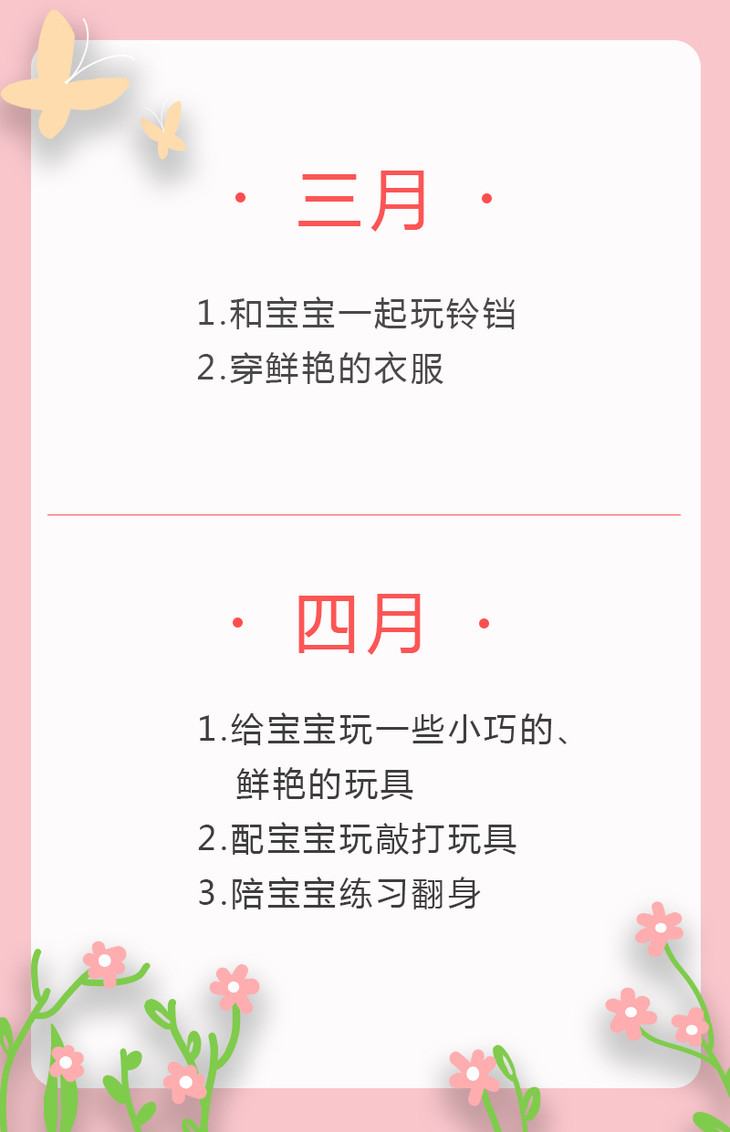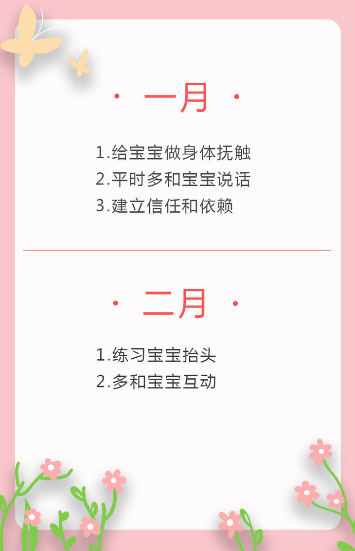 婴幼儿时期,是儿童心理发展过程中最重要的时期。这十二个月变化非常快,妈 妈们一不小心就会错过锻炼宝宝的黄金期。然而很多妈妈(特别是新手妈妈)都 不知道怎么锻炼宝宝。下面是1~12月龄宝宝互动清单,教你如何和宝宝互动~~