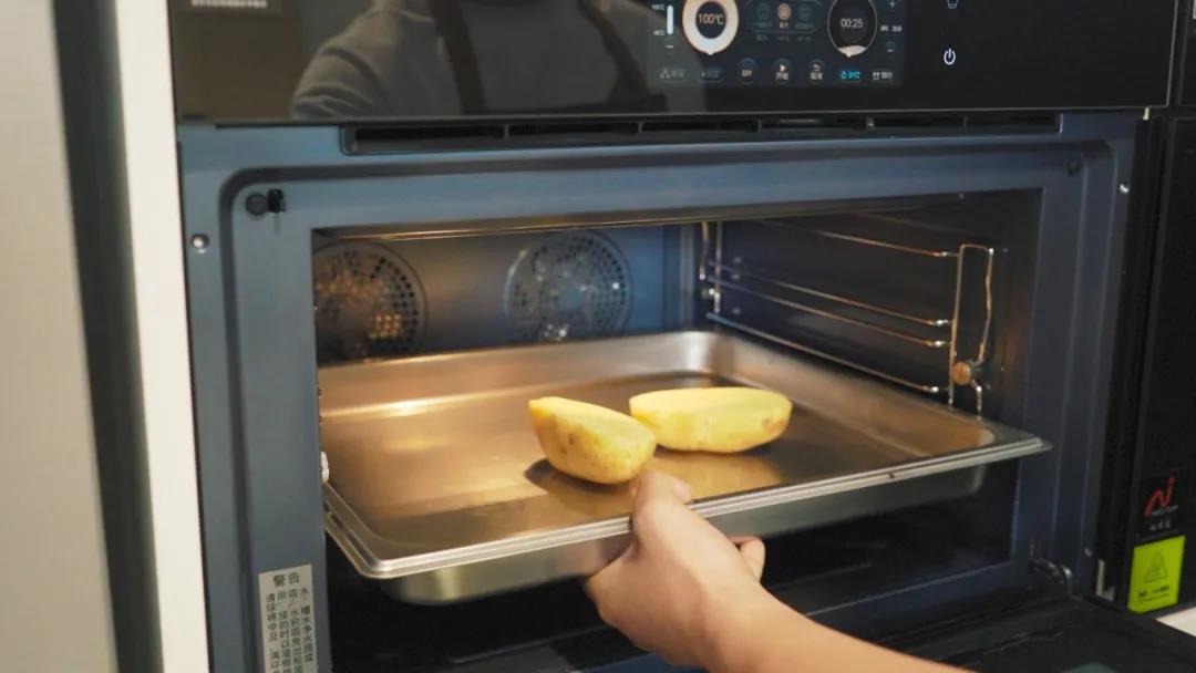 [1]将土豆切半放入凯度蒸烤箱中,用纯蒸模式100度蒸30分钟。