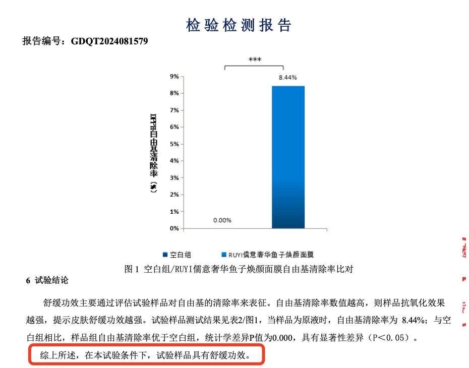 经权威第三方机构严格检测检验,其出具的报告明确表明,这款儒意涂抹面膜具备显著的舒缓功效。