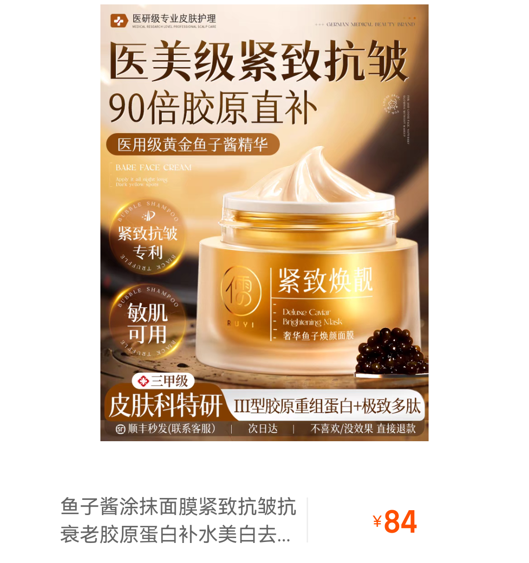 我和团队小伙伴从成分、功效、质地、价格等多方面,精挑细选对比了众多面膜,终于挖掘出这款小众宝藏——【儒意奢华鱼子焕颜面膜】