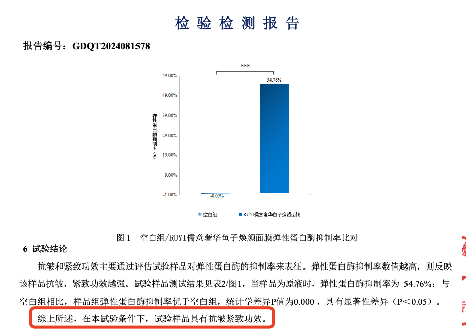 根据权威第三方机构出具的专业检测检验报告,这款儒意紧致面膜在抗皱紧致方面的卓越功效得到有力验证。