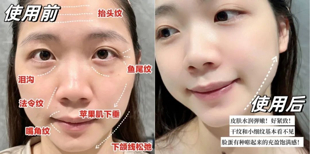 加之繁忙的工作、琐碎的生活,再偶尔熬个夜,对着镜子一照,不禁感叹,皮肤不仅暗沉无光,法令纹仿佛加深了,苹果肌也有些下垂,整个人显得毫无生气!