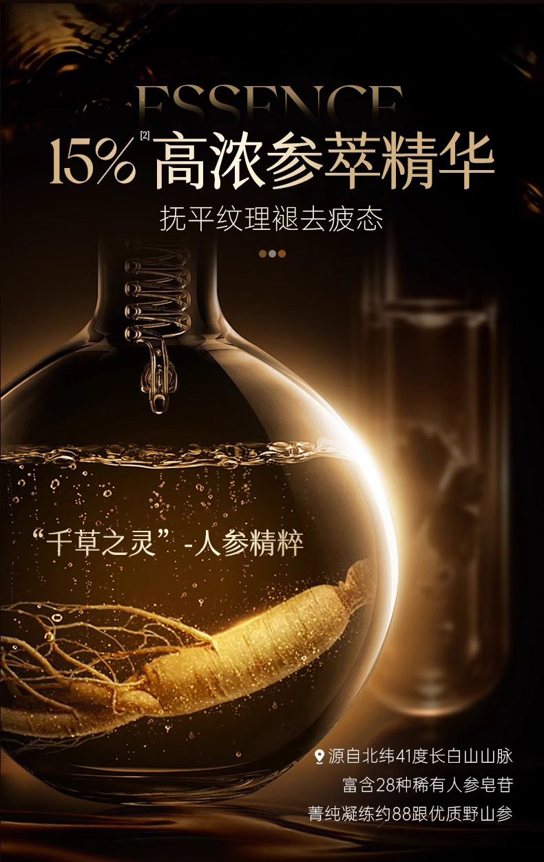 再加上✅15%高浓度人参精粹的助力,人参精粹具有强大的滋养功效,能为肌肤提供丰富的营养,进一步提升肌肤的紧致度。