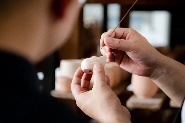所以今年年初,我们拜访了上林湖越窑青瓷技艺的集大成者孙氏父子——中国陶瓷艺术大师孙迈华先生和越窑青瓷传承人孙威先生,双方对青瓷技艺与香文化进行交流探讨,越窑青瓷与方寸线香的联名款礼盒『风』,就这样诞生了。