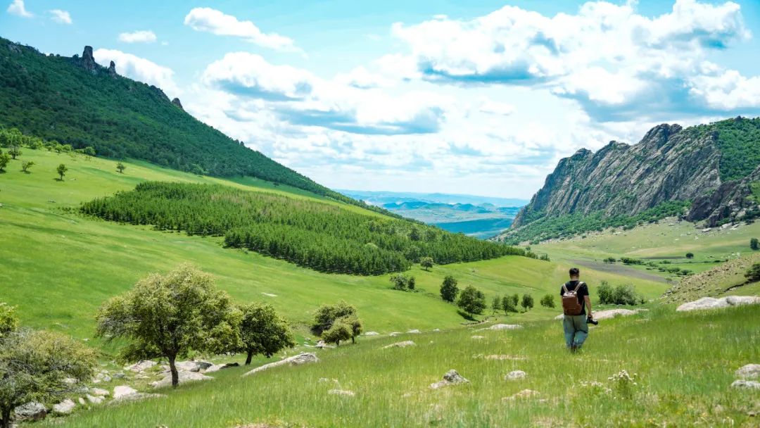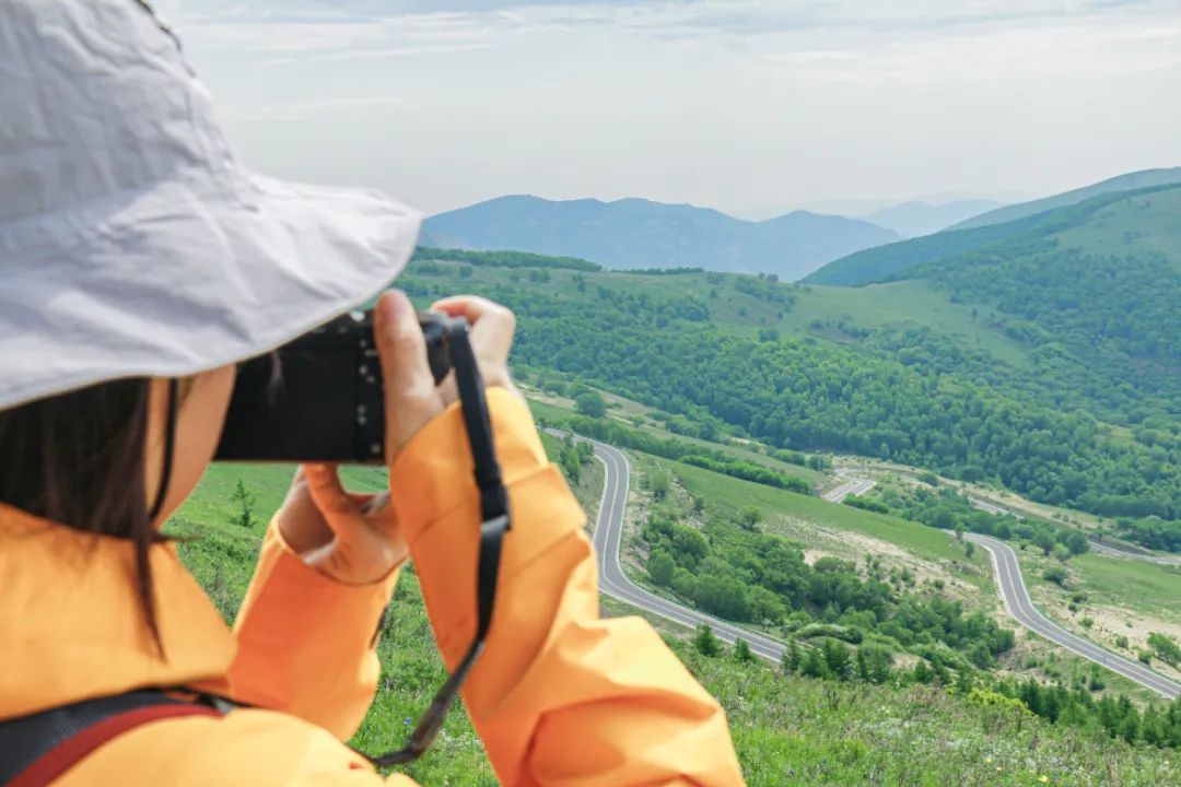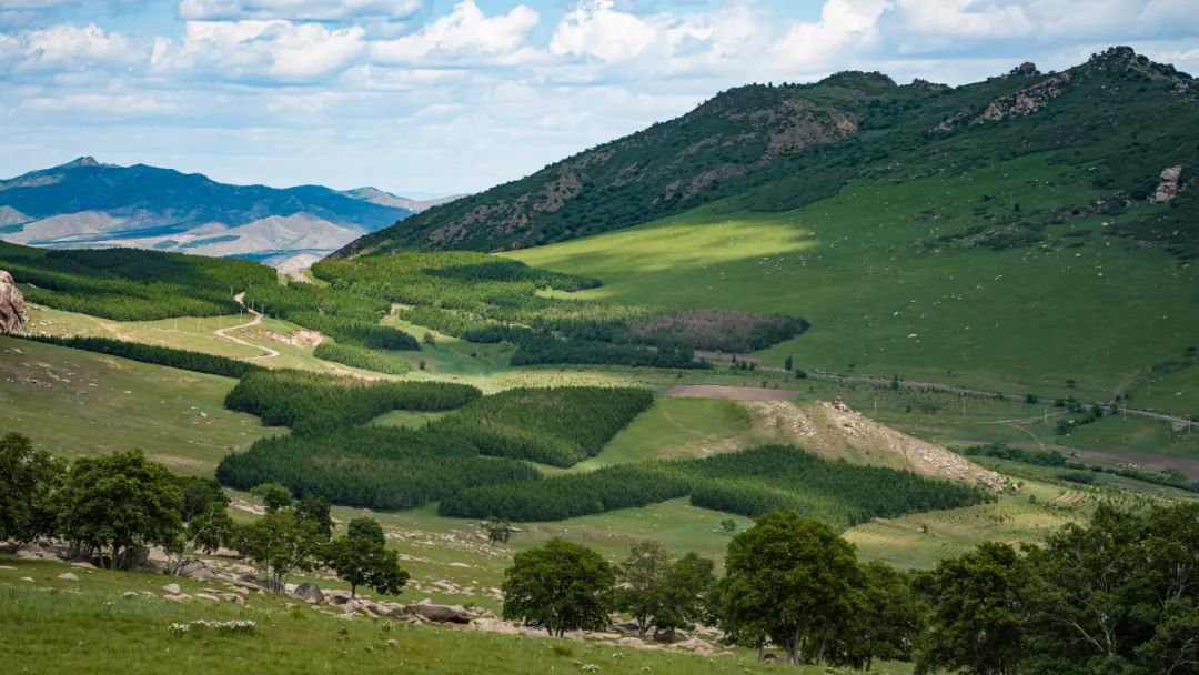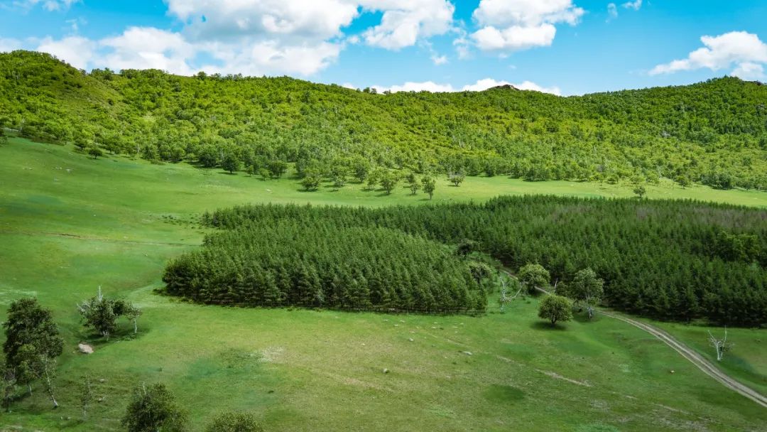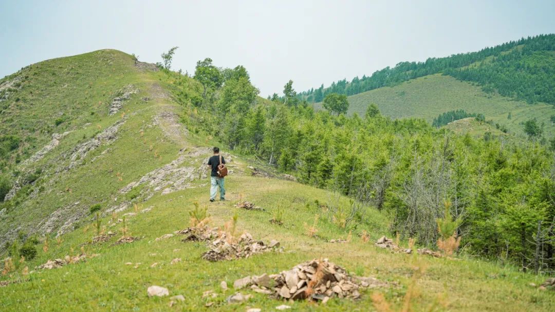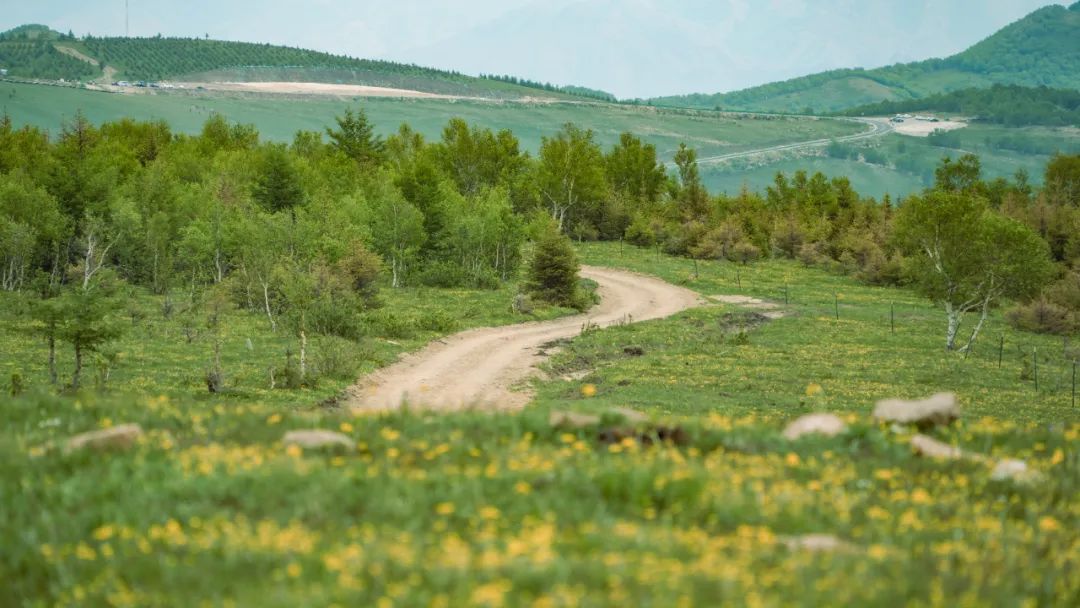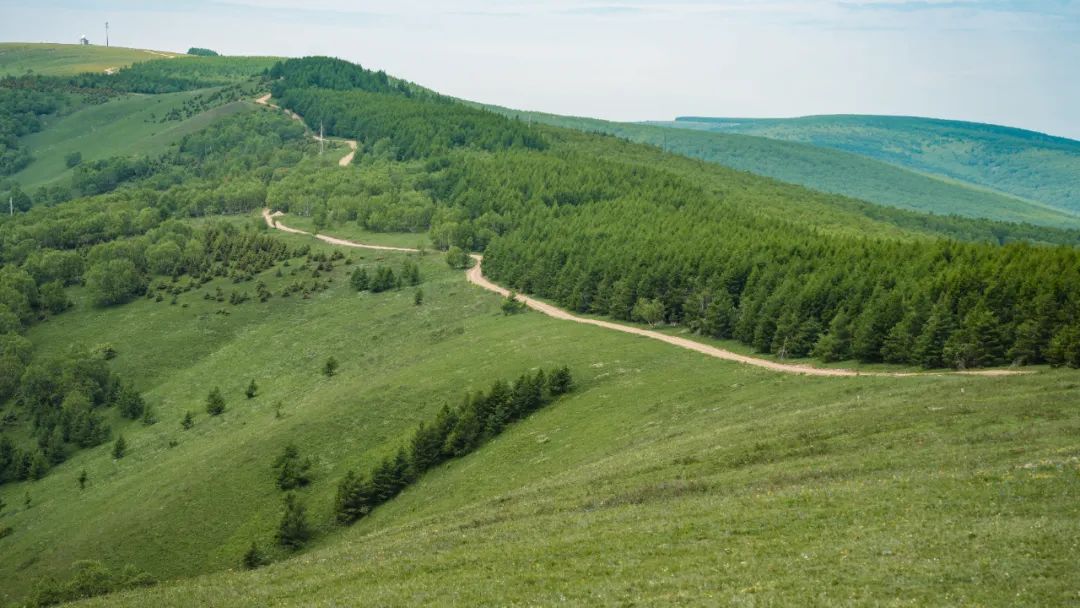从赤峰市区驱车过来距离不算远,但森林公园进山关卡处限高,大巴车进不来,这天直接换乘越野车,沿着弯弯绕绕的盘山公路慢慢爬升,两旁是对打工人视力极为友好的苍翠绿林。