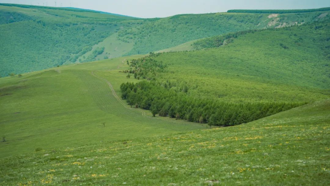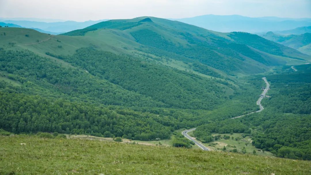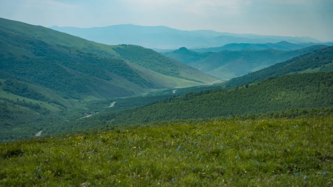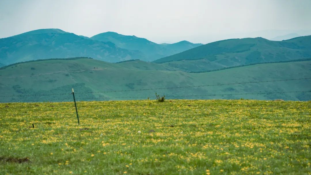 放眼望去,只见连绵无尽的远山,森林与草甸交织,仿佛褪毛期的小羊,毛茸茸地一大团,铺在大地之上。