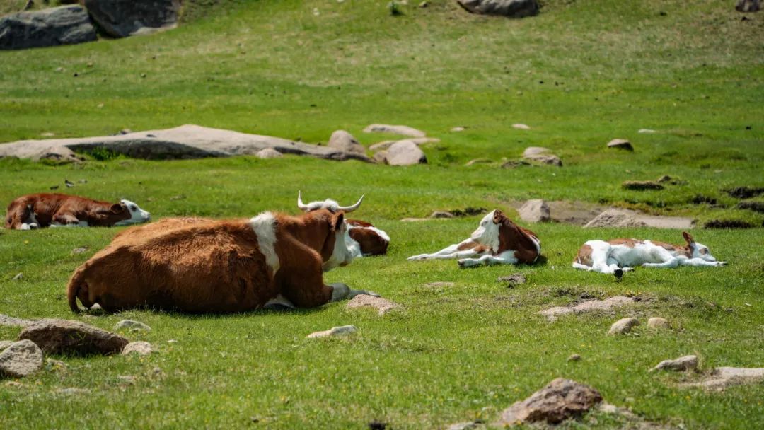 牛羊身上清脆的铃铛声与低沉的“哞哞“声在山间回响。好一派远离喧嚣的惬意与祥和。