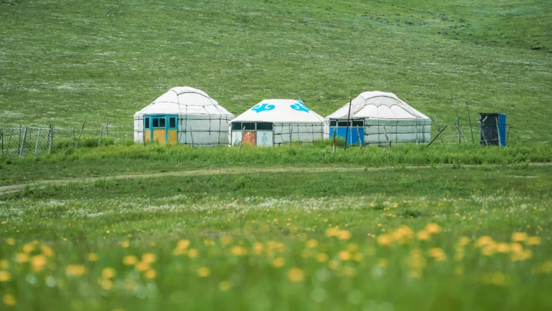 路上遇到的唯有牧羊人与成群的牛羊,蒙古包上飘荡着袅袅的炊烟,是草原上难得的烟火气。牧羊人难得遇上路人,热心地询问“要不要进来吃点东西?”