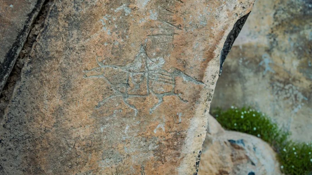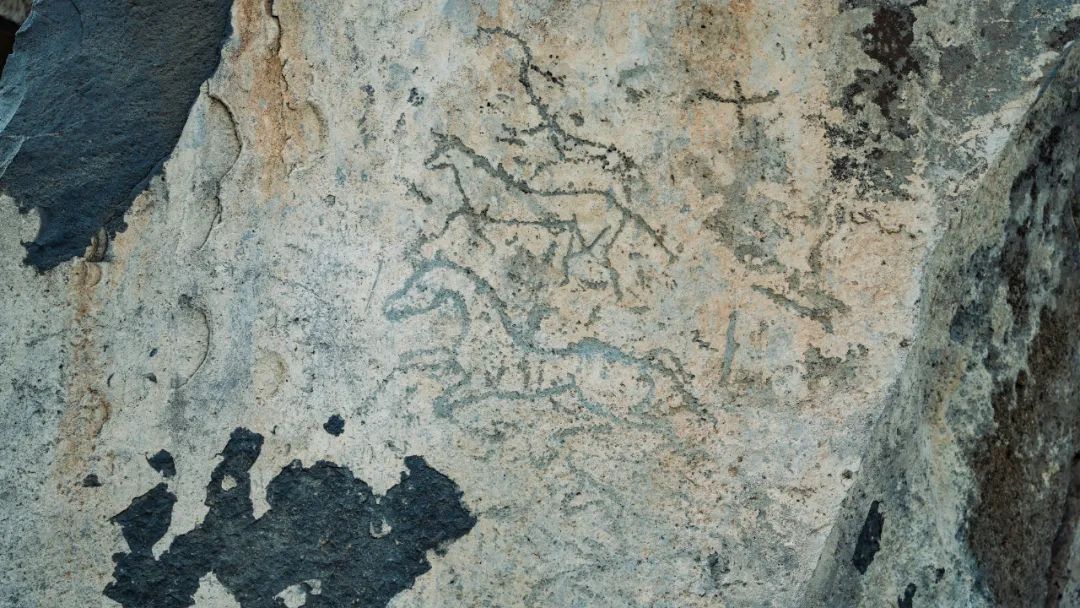 湖东岸沉寂的火山口砧子山,陡峭岩壁上还镌刻着辽代岩画狩猎、舞蹈的场景,历经岁月洗礼,岩画至今仍栩栩如生,不愧是骁勇的马背上的民族。