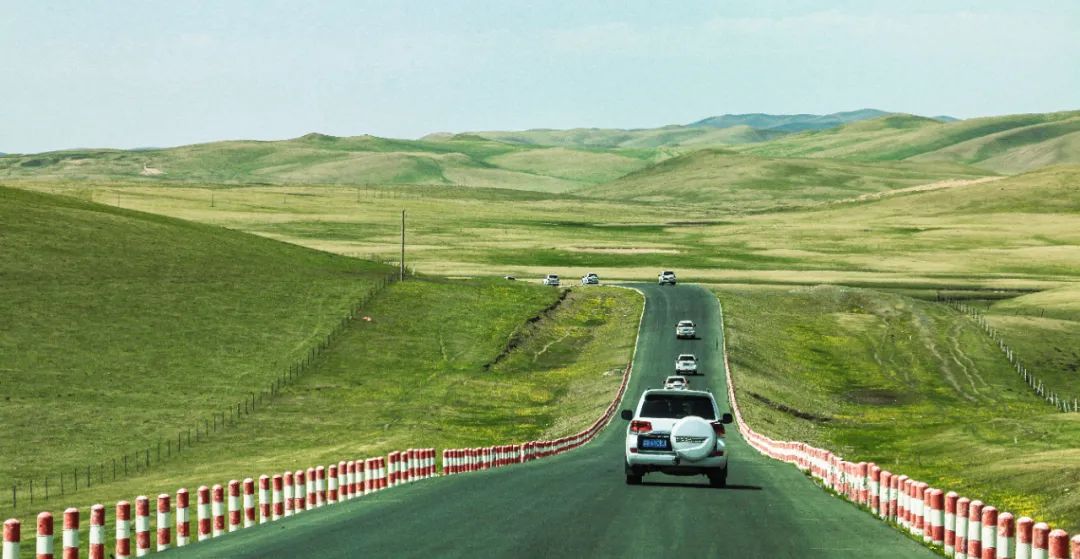 这条线路几乎全程在辽阔的贡格尔草原上穿行,它辽阔、平坦、纯净,道路笔直或舒缓起伏,像一条墨色丝带铺展在无垠的绿野之上。两侧是一望无际的贡格尔草原,牛羊成群,蒙古包星星点点。