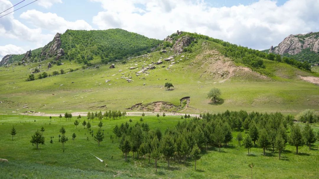 大青山的核心景观为第四纪冰川运动形成的岩臼群、花岗岩石阵和裂谷地貌,拥有我国现存规模最大且保存完整的岩臼地质遗迹,主峰海拔 1574 米,地势起伏较大,山脉连绵,集高山草原、原始森林、裂缝石林、山泉溪流等景观于一体。