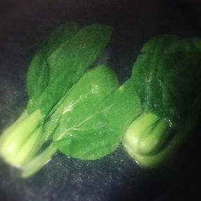 2、油菜洗净,焯水备用;