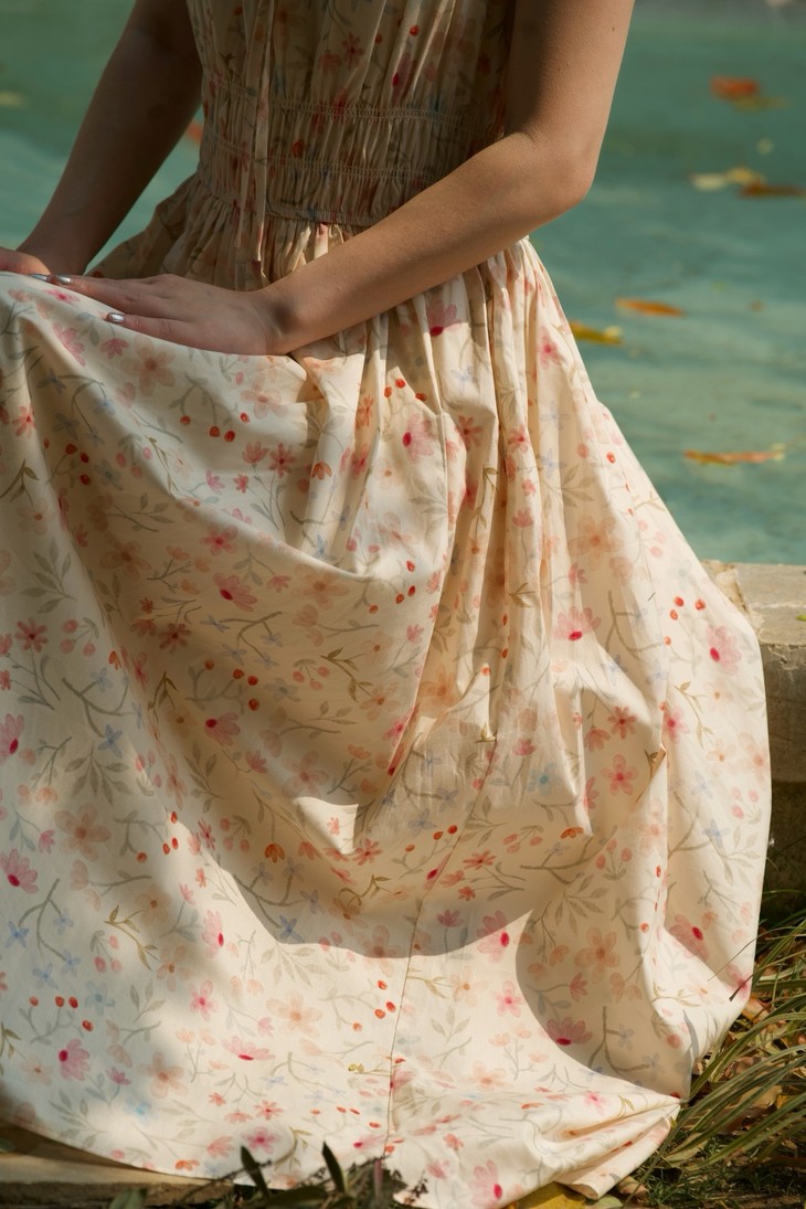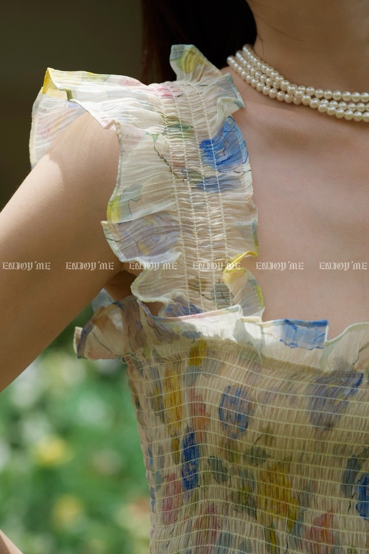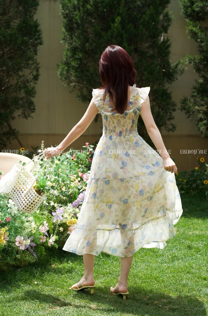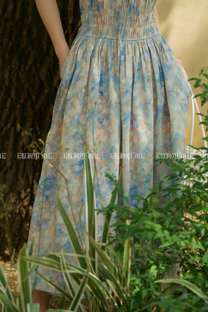 【莫奈花园碎花飞袖裙|假日油画衣橱】