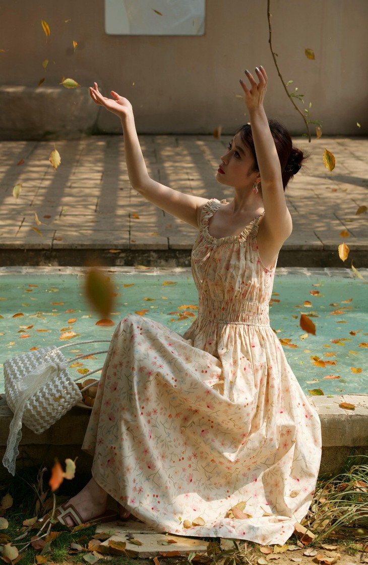 飞袖漾开油画笔触般的碎花光影