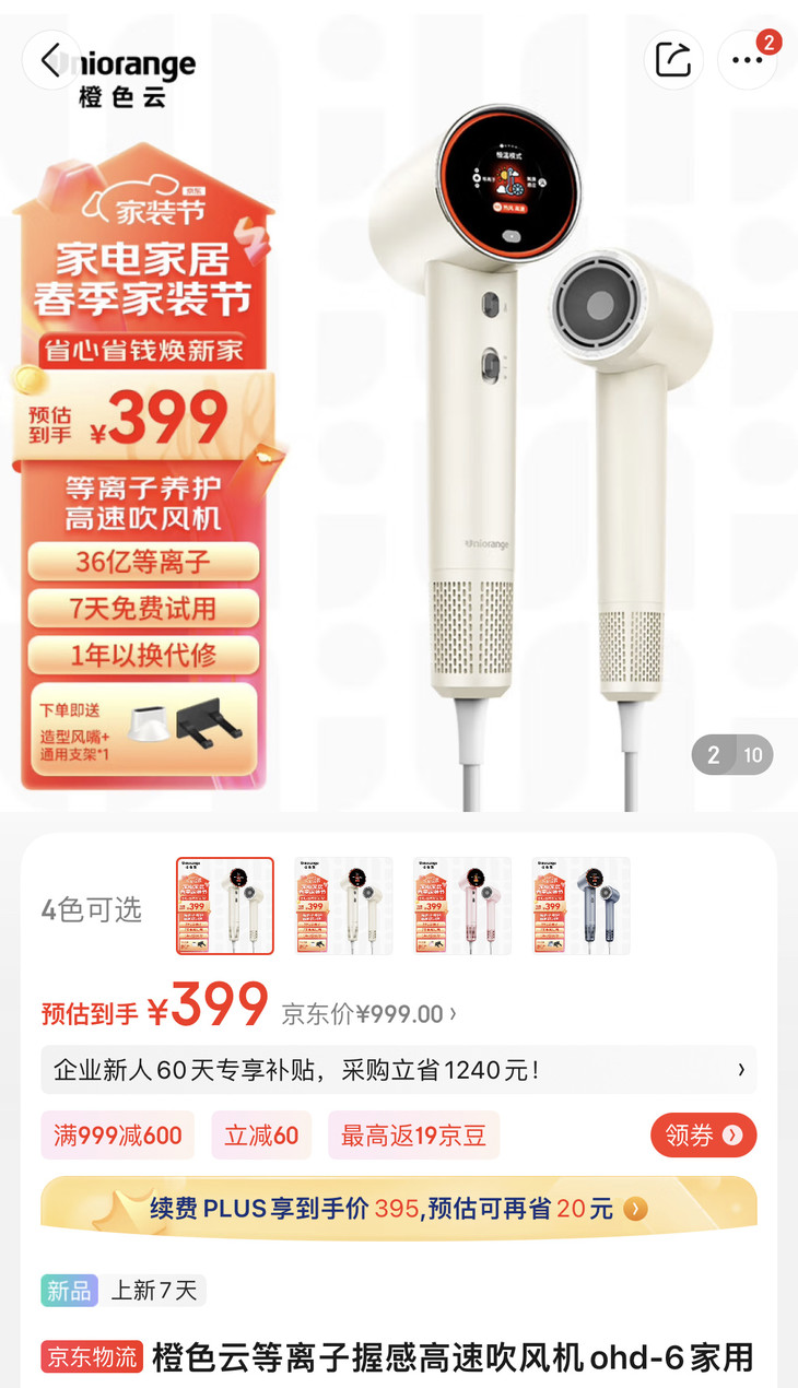橙色云智能触感吹风机,释放强效等离子体,能有效破坏头螨等有害病原,杀菌护发,保护头皮环境~