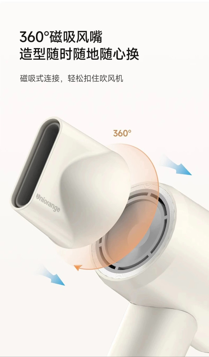 ✅360°磁吸风嘴,轻松扣住吹风机,随时随地轻松换造型~