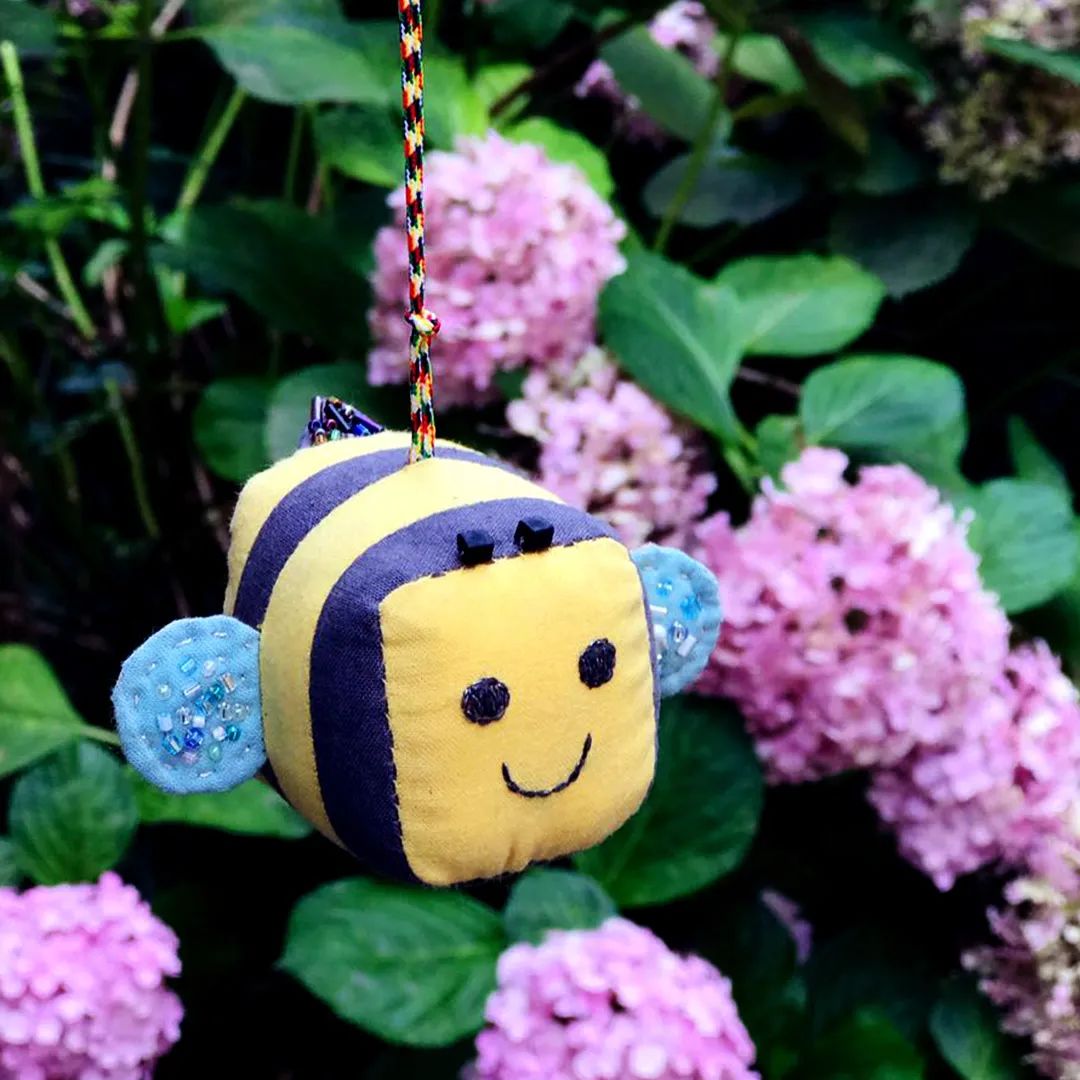 主体布料运用了最近非常喜欢的植物染棉布,颜色鲜明但不刺眼。小蜜蜂的条纹是用黄和黑灰色布料拼接出来的。翅膀、触角、尾部用了一些闪亮亮的小珠子点缀。还用了传统吉祥的五彩绳做挂绳。里面放了由艾叶、白芷、石菖蒲、薄荷、金银花、藿香、紫苏叶、丁香、苍术等混合中草药粉末,可以防虫驱蚊,芳香化浊哦~
