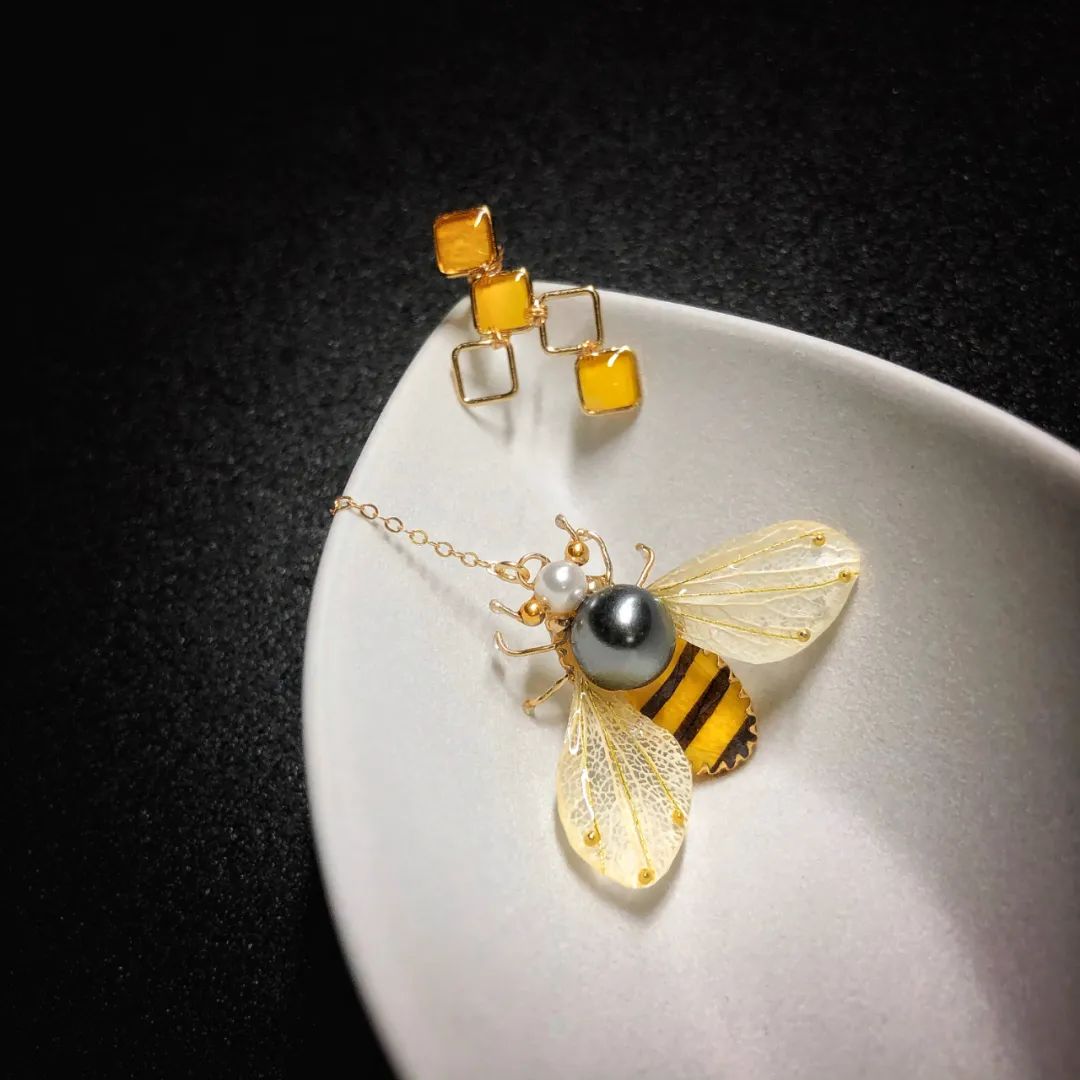这次的蜜蜂主题我思考了很久,才迟迟交稿。最终用蜜蜂元素,制作成了耳环,戒指,还有项圈。我希望能将主题元素与大自然真正结合。蜜蜂与花的关系,也是蜜蜂与花蜜的关系。雨果说,生活如花,爱如花蜜,有花有爱的生活,应该就是最甜蜜的生活了。