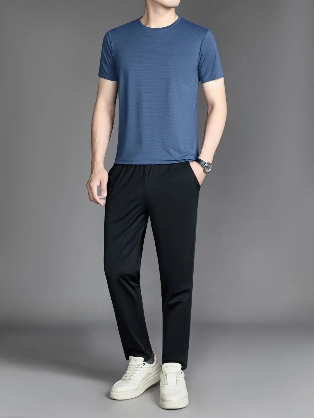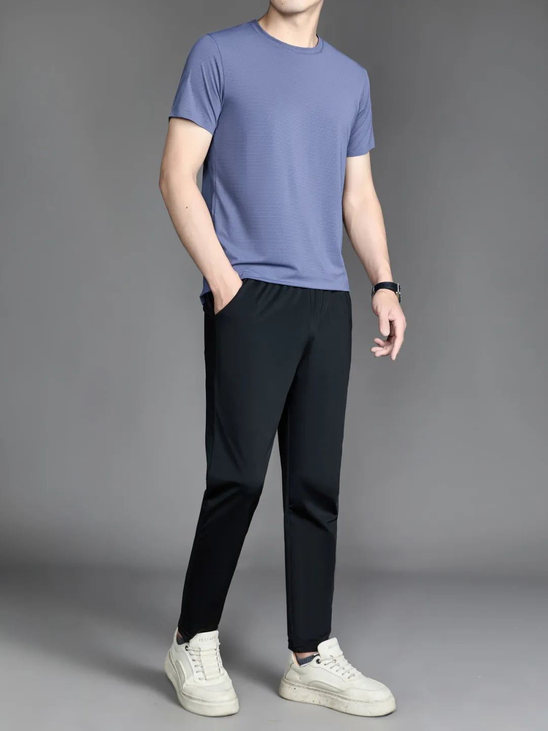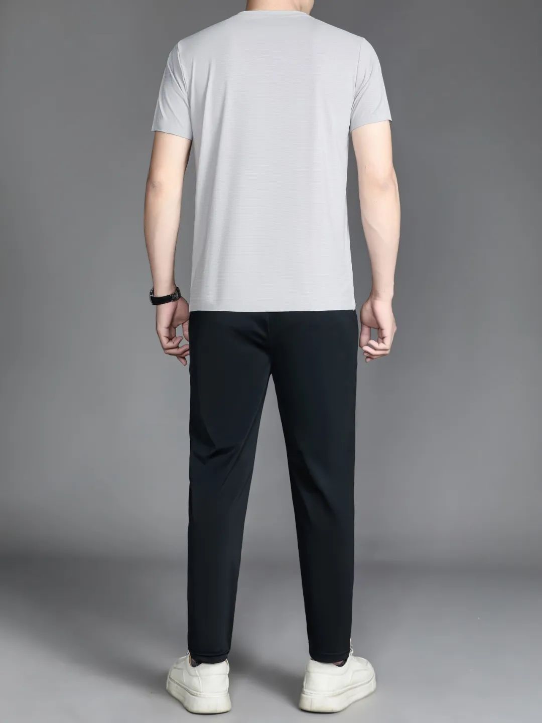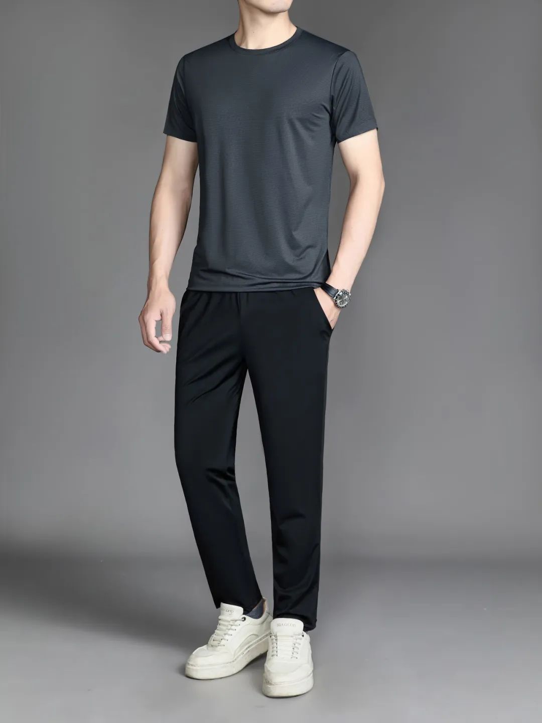 速干衣+休闲裤的组合,什么都能搭,出门也不用考虑穿什么而烦恼,简直是夏日常用的公式,清爽又不失活力。