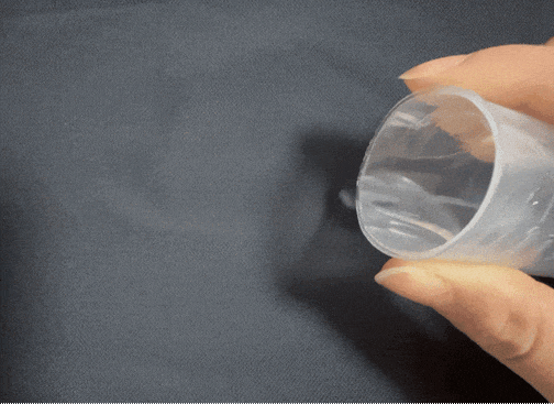 将一杯水倒在面料上模拟人体出汗状况,可以看到水珠在接触到面料的瞬间就被吸收了,导湿吸汗max!