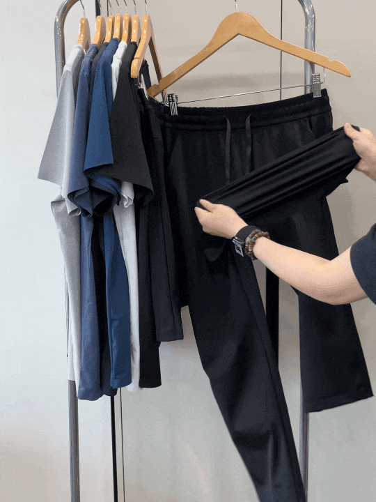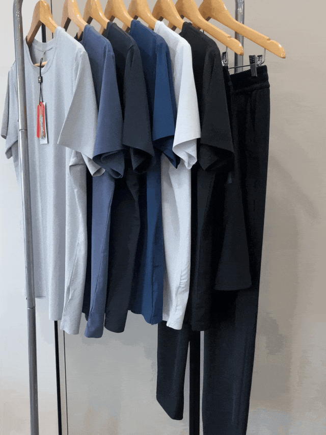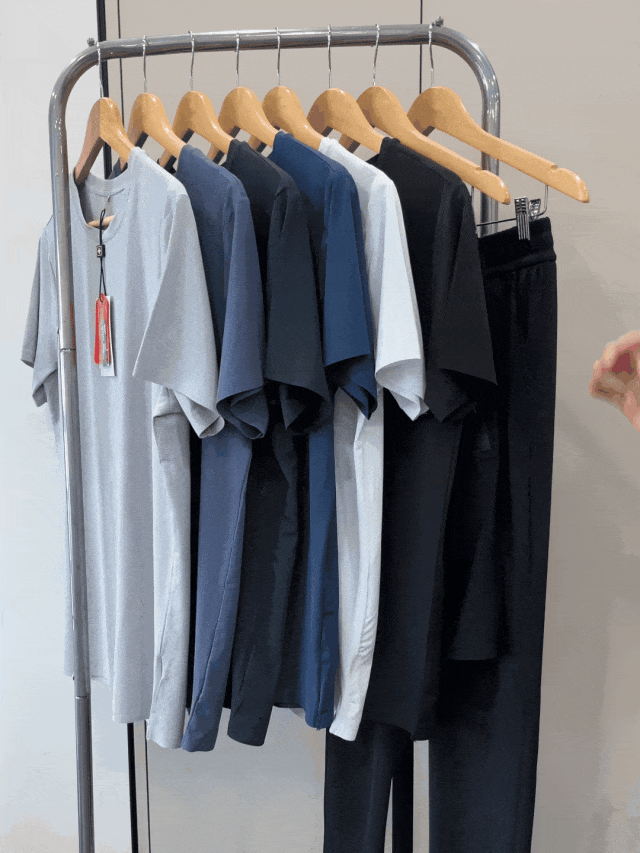 上衣一共有6色可选:白色、黑色、兰紫、深蓝、浅灰、深灰,都是低调百搭不挑场合的颜色,裤子是固定搭配的默认黑色,即使搭配其他上衣也很百搭哦!