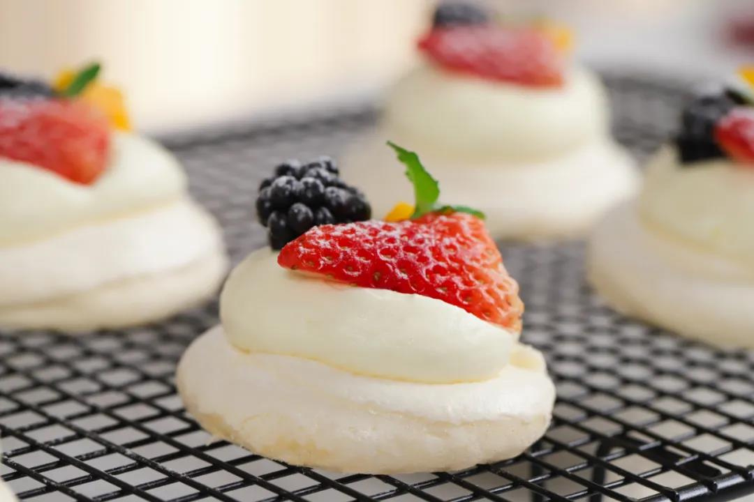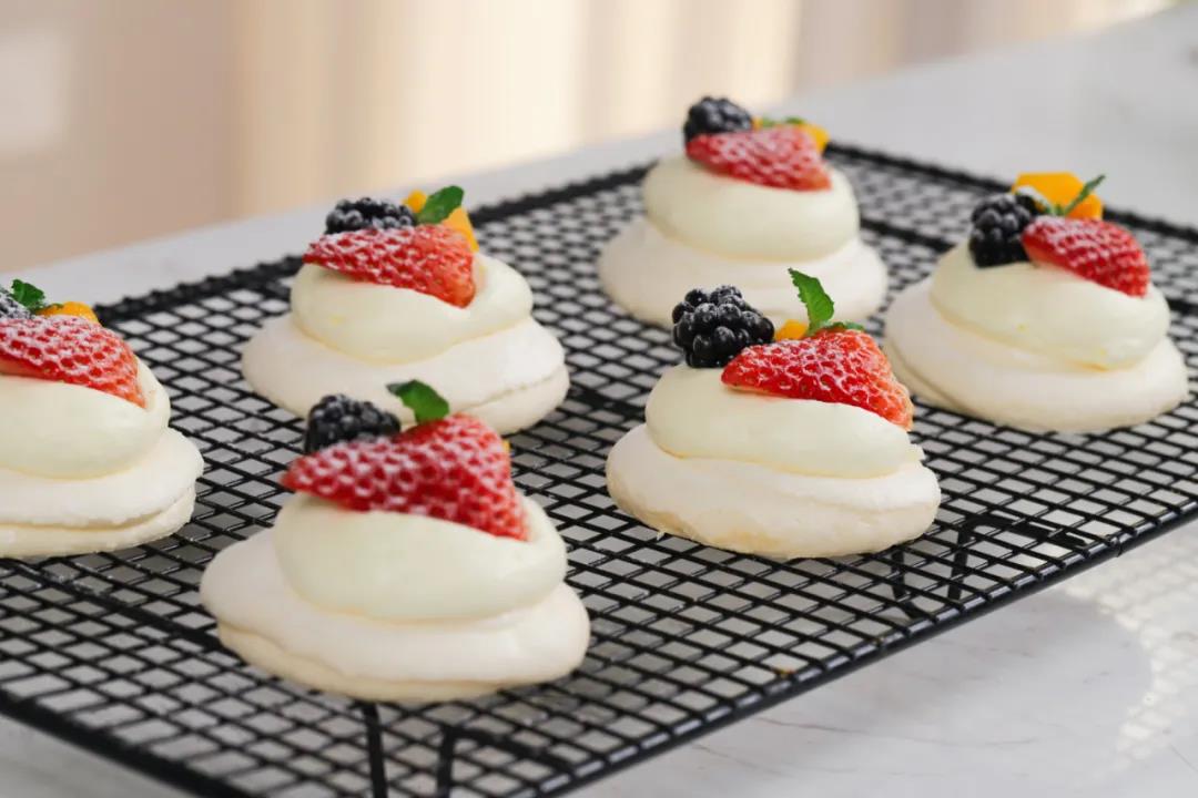 配上奶油和水果一起食用,正好中和了蛋白糖霜的甜腻,那入口即化的感觉,犹如给味蕾享受了一场奇妙之旅!