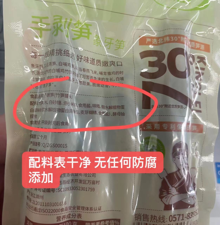 原料用的是笋,也叫白哺鸡笋,每当春燕飞来,哺育雏鸡的季节,白哺鸡笋开始了短暂而急速的生长