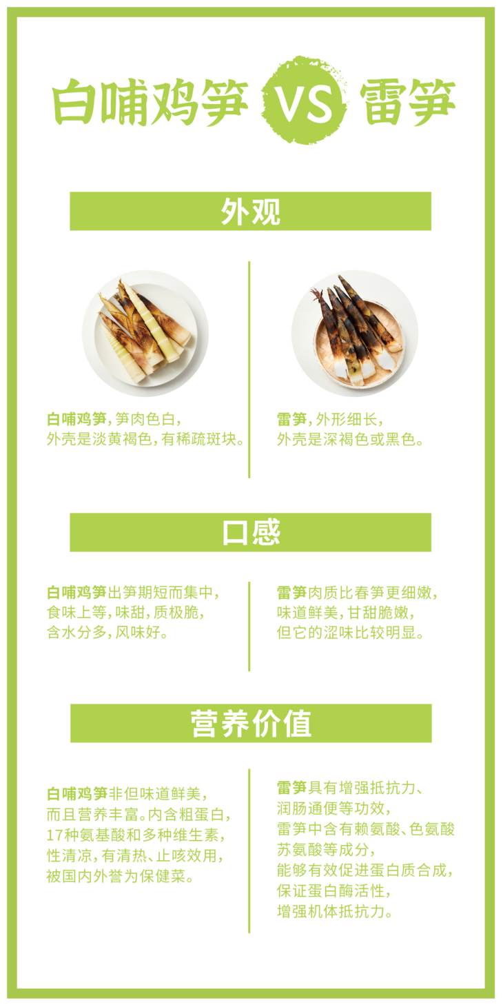 白哺鸡笋笋壳、肉均洁白如牙齿,口感鲜美,脆嫩幼滑