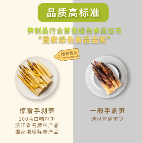 惊雷拥有行业权威的专家团队,匠心研制笋制品配方,从食材挑选到产品制作,坚持源头把控,严格遵从多重繁琐工序,把控每个环节,秉持“只为一颗好笋”的信念