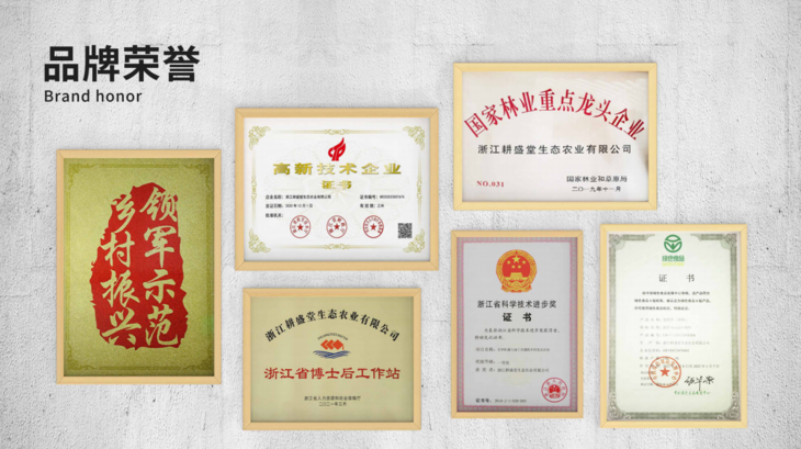 先后获得了“浙江省名牌农产品”、“浙江省名牌林产品”荣誉