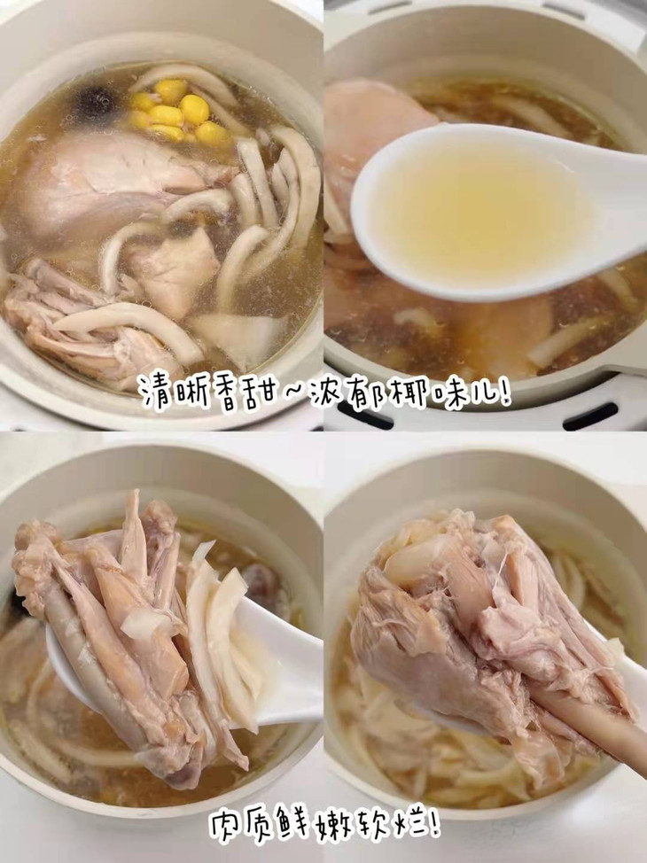 ③把食材全部放入炖锅,倒入椰子汁,炖2个半小时。就可以出锅啦,软嫩香甜。