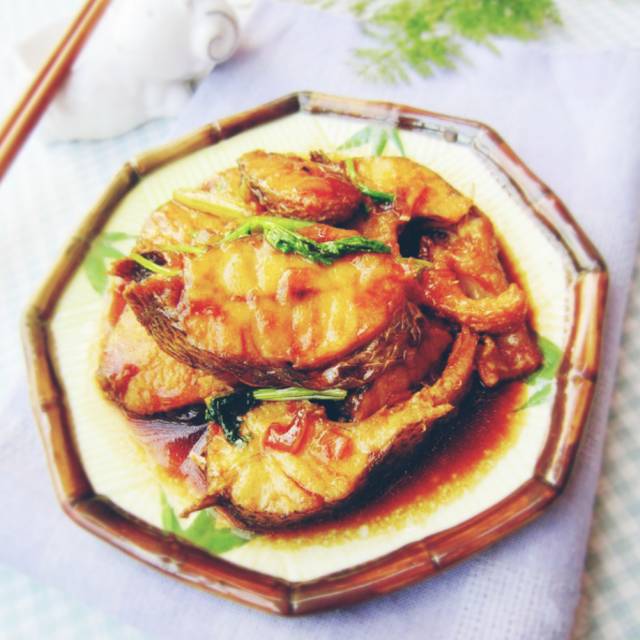 鲈鱼多数情况下我都用来清蒸,这次应诗太的要求特意做了红烧的,把鲈鱼斩块来烧,这样炸时不用放太多油,而且成品也更入味一些。