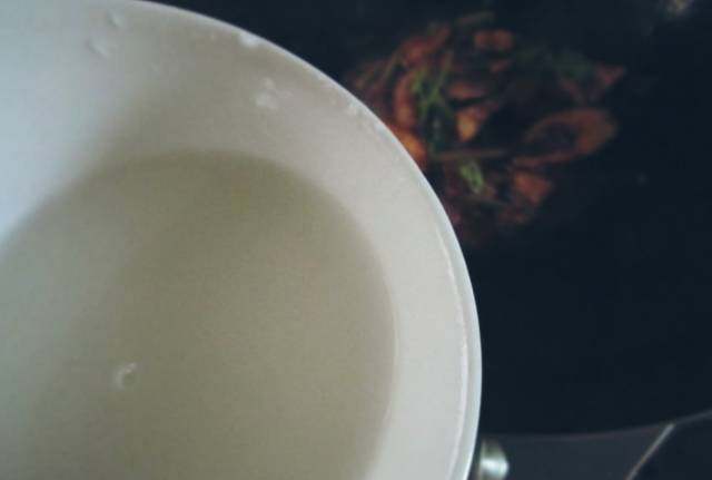 4、最后加入香芹,调入水淀粉,大火收汁即可。