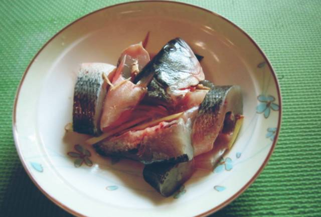 1、把鲈鱼处理干净后,切成段,用料酒、盐、姜丝腌制10分钟;