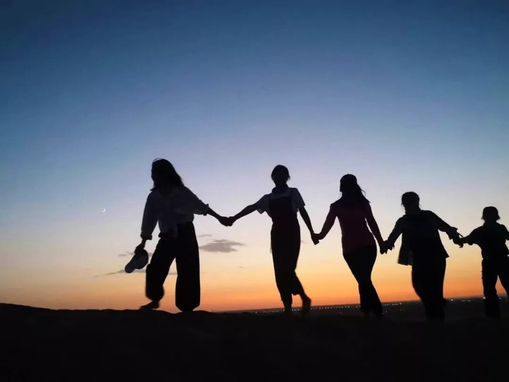 都快放弃的时候,小卉感觉脚下踩到什么东西硌脚,“手机找到啦,找到啦!”小静开心地直冲下沙坡,抱着我和小卉又蹦又跳。