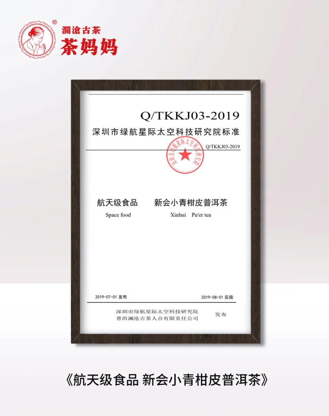 《航天级食品新会小青柑皮普洱茶》标准制定者,